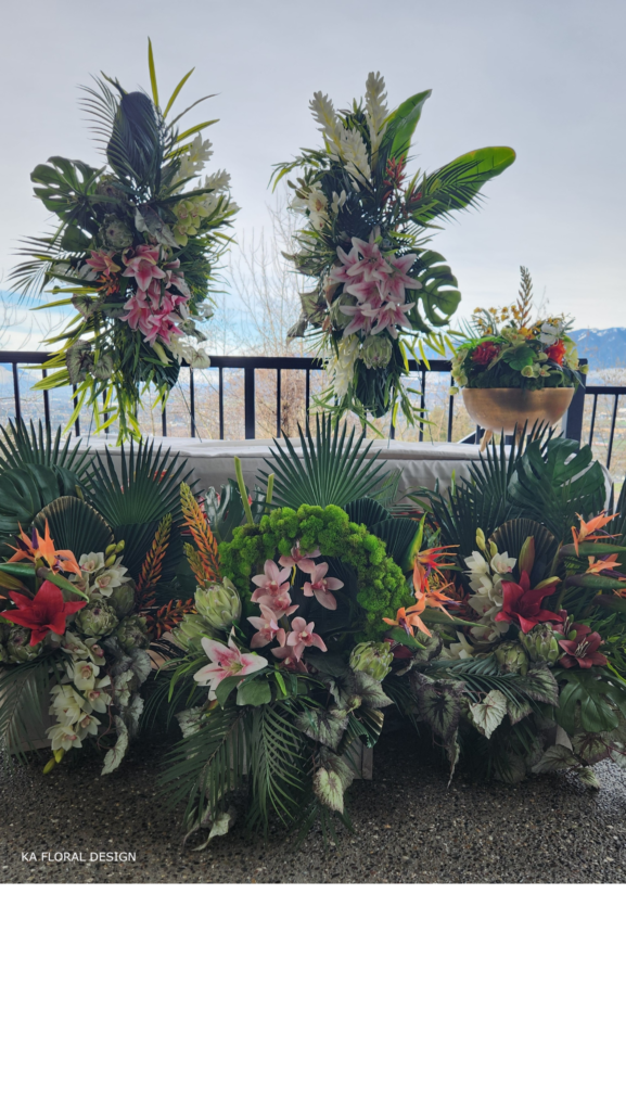At KA Floral Design, we bring sustainable elegance to the Fraser Valley. Our Faux n Fresh model is designed for the modern event—offering wind-stable, tip-resistant arrangements that transition gracefully from your ceremony or entrance to your main reception.